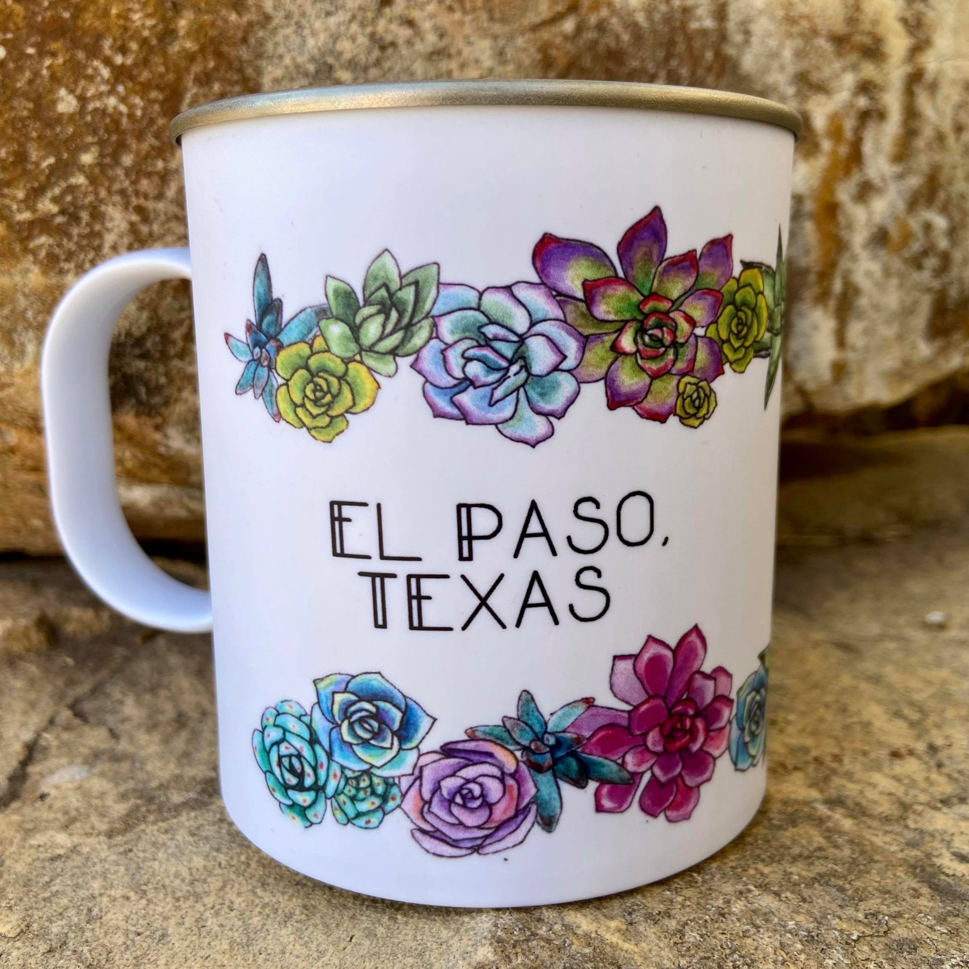 Elevate your morning routine with our 15 Oz El Paso-inspired Tin Cups! Perfect for enjoying your favorite beverages, whether it's a frothy latte or a strong black coffee. These boldly designed tin cups add a touch of southwest style to your day.